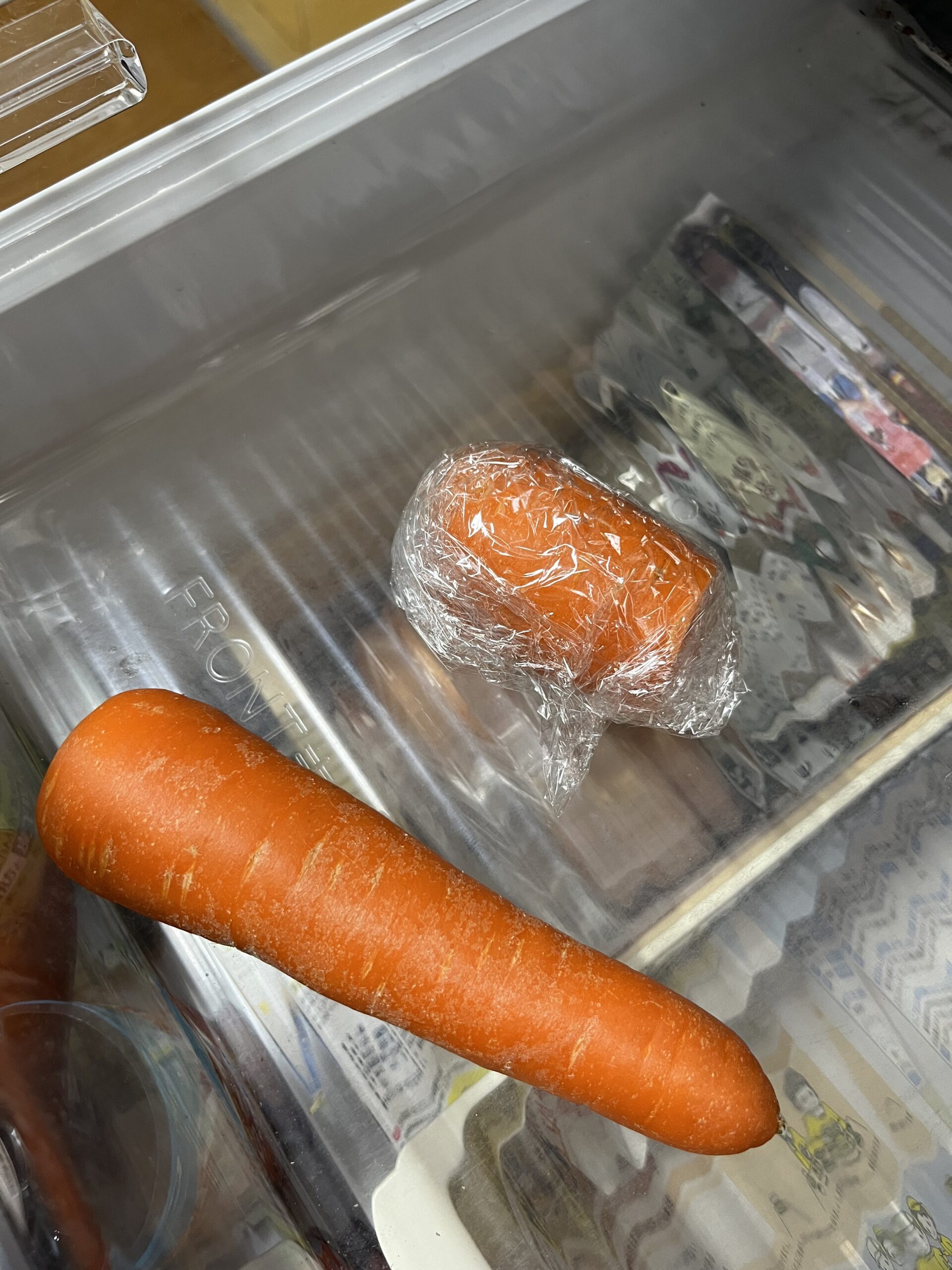 中学生の息子という食べ盛りもいるし、野菜も傷むから1本なら1本丸ごと使っていいからね?と前もって伝えていますがこの状態で置かれてしまう人参。夫が台所に立つとどうしても半端野菜が冷蔵庫にあるんです。